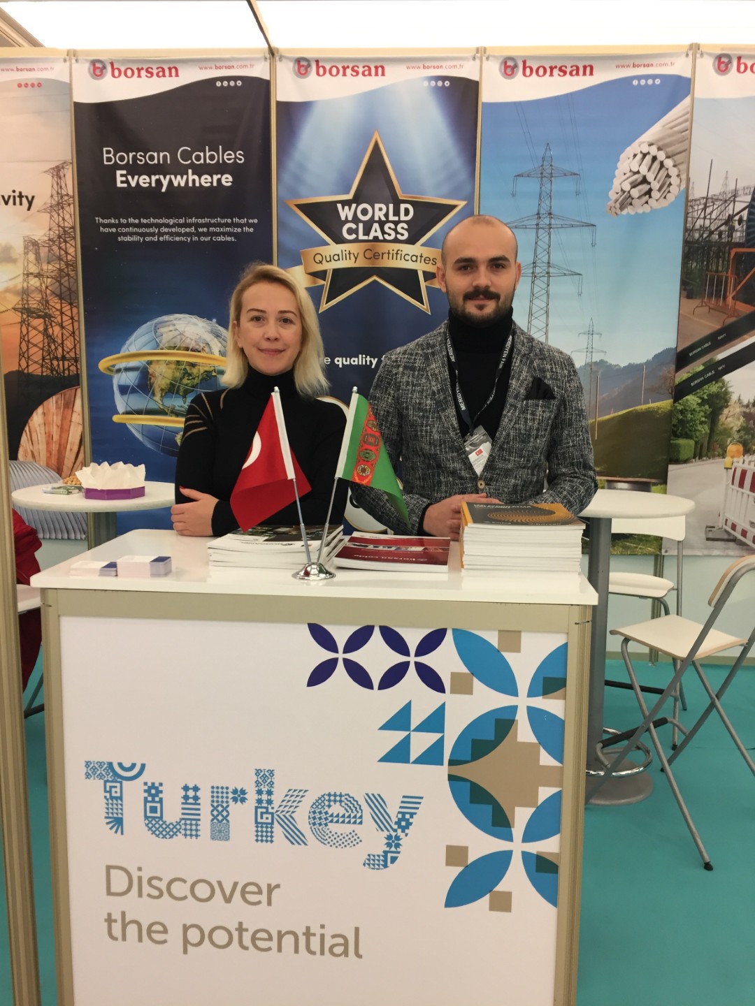 Borsan Group, Turkey's leading domestic capital industry company, was the center of attention at the Turkish Export Products 2018 Fair held in Turkmenistan with its Borsan Cable and Borled brands, which have a respectable place in the cable and lighting sectors. Among those who visited the Borsan stand were Trade Minister Ruhsar Pekcan, as well as Turkmenistan's Minister of Trade and Foreign Economic Relations Amandurdu Isanov and TOBB President Rifat Hisarciklıoglu.