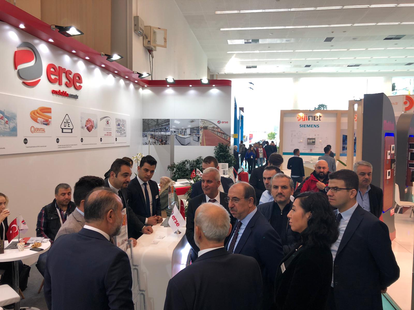 Erse Kablo, which leads the sector with its brand awareness, took part in the "Smart Building Technologies & Electrical Systems / A-Tech Fair" held at Ankara Congresium on November 22-25. Erse Kablo General Manager Mr. Selami Sivritepe, Domestic Sales Manager Mr. Mehmet Güven and Dear Regional Sales Managers, Minister of Environment and Urbanization Mr. Murat Kurum, Mayor of Ankara Metropolitan Municipality Mr. Mustafa Tuna, Vice President of TOKI Mr. He met with the sector with the valuable visit of Mehmet Özçelik.