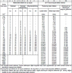 Tablo 1: TS IEC 60228: 2007, Çizelge 2