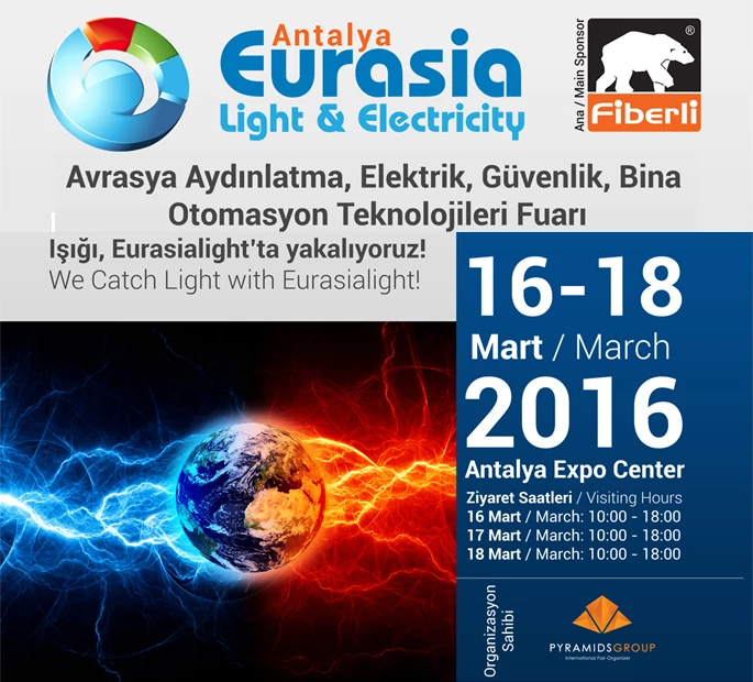 Avrasya Aydınlatma, Elektrik ve Bina Otomasyon Teknolojileri Fuarı, 16-18 Mart 2016 tarihlerinde yüzlerce katılımcısını ve Orta Doğu, Körfez Ülkeleri ve Türkiye Cumhuriyetlerden on binlerce ziyaretçisini Antalya Fuar Merkezi’nde ağırlayacak.