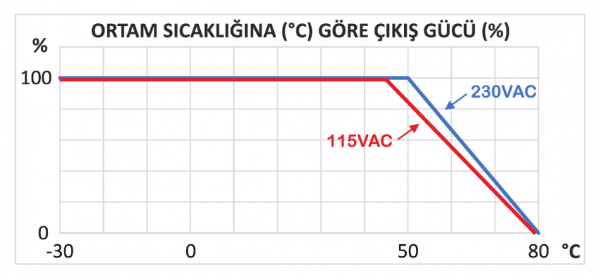 The SBC-5A automatically limits its current output at high temperatures. A correctly installed charger with sufficient airflow will keep providing the maximum current supply until 50°C at 230VAC. After this, it will gradually decrease its output, reaching 0A at 85°C. The SBC-5A will resume operation as soon as the internal temperature falls below 85°C