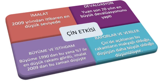 Çinden gelen verilerin güvensizliği ile dünya borsaları domino etkisi oluşturarak ciddi düşüşler yaşadı, 2015 yılında önemli Dünya Borsalarında kayıp %13 ile %43 arasında değişti. Küresel piyasalarda oluşan dalgalanma bir nebze Tüketici alışkanlıklarını ve harcamaları daraltırken, iç piyasalardaki belirsizlik ise bir süre daha Finansal Piyasaların maliyetlerini artıracak.