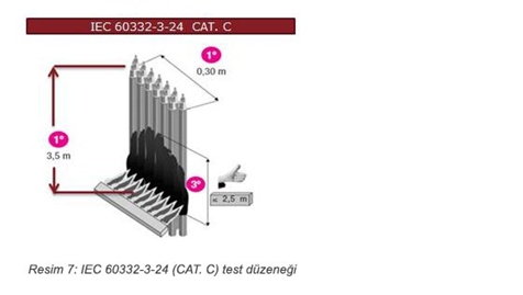 In the event of a fire, armored fiber optic cables are tested for resistance to external factors against falling particles or shaking. The sample to be tested must be a piece of cable of sufficient length (at least 5 m) with two ends coming out of the test cell and covered approximately 100 mm or with the outer covers removed at each end. For multiple fiber optic cables; The samples to be connected should be selected from the outermost layer of the cable.