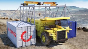 Konecranes, popüler CXT tavan vincini, çelik bir kasa ve iki adet standart ISO yük konteyneri üzerine monte ederek güçlü, uyarlanabilir ve taşınabilir bir endüstriyel bir vinç geliştirdi.