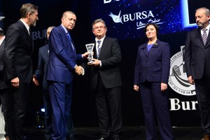 BTSO’nun, kent ve ülke ekonomisine yüksek düzeyde katkı sağlayan iş dünyası temsilcilerini ödüllendirdiği tören Bursa Merinos Atatürk Kongre ve Kültür Merkezi’nde gerçekleştirildi. Ekonomiye Değer Katanlar – 2015 Ödül Töreni’ne Cumhurbaşkanı Recep Tayyip Erdoğan, İçişleri Bakanı Efkan Ala, Sağlık Bakanı Mehmet Müezzinoğlu, Gençlik ve Spor Bakanı Akif Çağatay Kılıç, Bursa Valisi Münir Karaloğlu, Bursa Büyükşehir Belediye Başkanı Recep Altepe, BTSO Yönetim Kurulu Başkanı İbrahim Burkay, Meclis Başkanı Remzi Topuk, Oda Yönetim Kurulu üyeleri, milletvekilleri, sanayici ve işadamları katıldı. Türkiye’nin kalkınma hedeflerinde öncülük rolünü üstenen Bursa’da 42. kez gerçekleştirilen törende 7 kategoride toplam 72 ödül dağıtıldı. Prysmian Group Türkiye, sektör birincileri kategorisinde Elektrik-Elektronik sektötörü birincisi olarak ödüle layık görüldü.