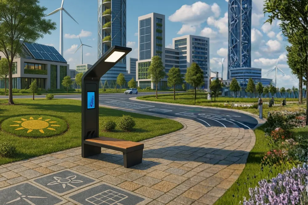 Güneş Enerjili Akıllı Şehir Bankı, elektrik ya da inşaat altyapısı gerektirmeden, yalnızca birkaç dakikada kurulabiliyor. Entegre güneş panelleri ve batarya sistemi sayesinde gün boyunca enerji depoluyor, kullanıcıların ihtiyaç duyduğu hizmetleri kesintisiz sunuyor. Bank; kablosuz şarj, USB çıkışları, Wi-Fi bağlantısı, LED aydınlatma, hava kalitesi sensörleri, reklam ekranı ve merkezi yönetim yazılımı entegrasyonu gibi birçok özelliği tek tasarımda bir araya getiriyor.